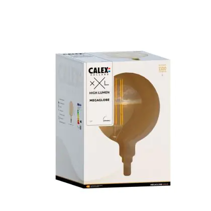 | Fabrikantnaam | Calex Megaglobe High Lumen G200 Goud Straight filament 220-240V 10.5W 1100lm 2100K E27 Dimbaar LED | |