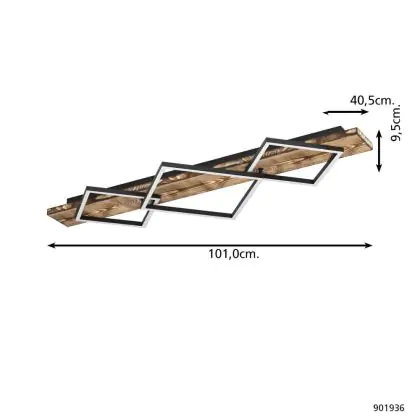 Beschrijving Eglo Plafondlamp Boyal Hout Zwart, Roestig 26W 3500lm - 830 Warm Wit