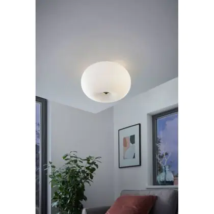 Beschrijving Eglo Plafondlamp Optica Staal Satijn Nikkel | Geschikt voor 2x E27