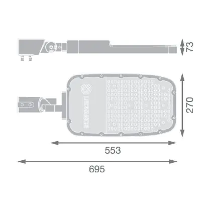 Beschrijving Ledvance LED Straatverlichting Area Extra Large RV35ST Aluminium Grijs 150W 19500lm 155X69D - 727 Zeer Warm Wit | IP66 - Asymmetrisch