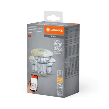 Beschrijving Ledvance Smart+ Wifi GU10 Spot 5W 350lm 45D - 827 Zeer Warm Wit | Dimbaar - Vervangt 40W