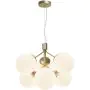 Deze Ivona hanglamp is messing met opaal glas, wat een glamoureuze en elegante uitstraling creëert. Het armatuur heeft 6 lampen met een E27 fitting (max. 28W). De hanglamp is dimbaar in combinatie met een dimbare lamp.