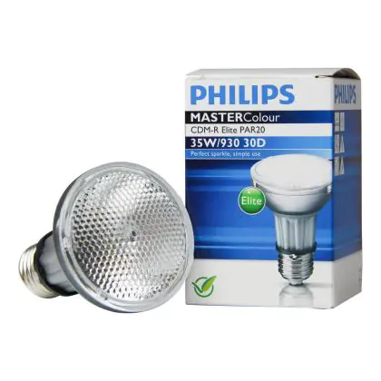 De Philips CDM-R Elite 35W 930 E27 PAR20 30D (MASTERColour) bestelt u tegen de scherpste prijzen bij Lampdirect! Neemt u ook eens een kijkje bij onze staffelkortingen voor nog meer korting! Heeft u vragen? Neem dan contact op met onze klantenservice!